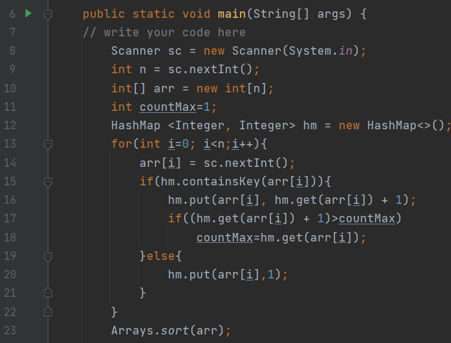 우선 해시맵으로 key, value로 저장하였다. 즉 value가 빈도수가 된당~