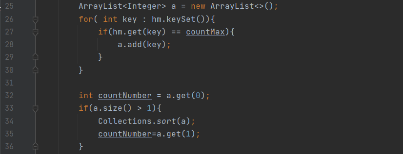 countMax를 value로 가지고 있는 key 들을 어레이리스트 a 에 저장하였다.